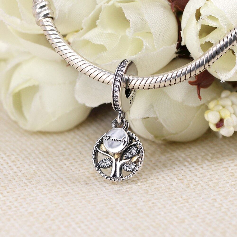 925 スターリングシルバービーズゴールデン家族遺産生活の木 CZ チャームフィットオリジナルパンドラブレスレット DIY チャームの女性ジュエリー