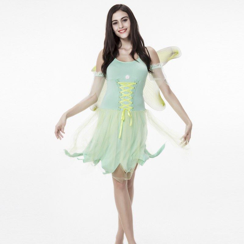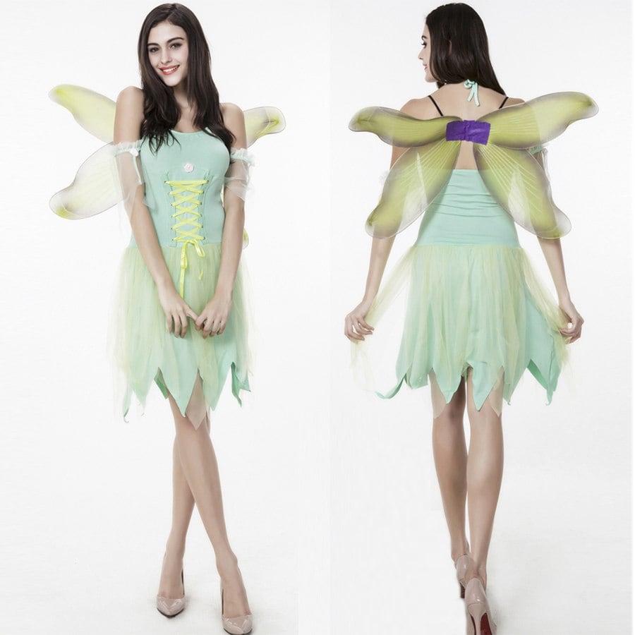 Umorden purimハロウィンパーティーティンカーベル衣装コスプレ用女性大人緑エルフ妖精姫天使のドレスの翼