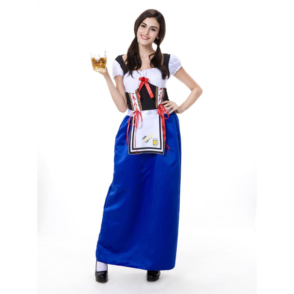 ハロウィンバイエルンオクトーバーウェイター衣装ドイツオックスフォード運河ガールgretchen衣装ファンタジアコスプレロングdressブルー