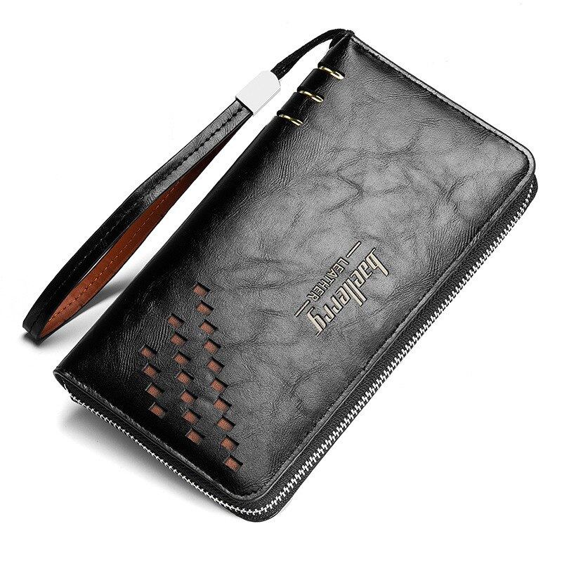 新しいメンズロング財布高容量ジッパーオープンpuレザーマルチidクレジットカードホルダー手首財布クラッチ財布送料無料