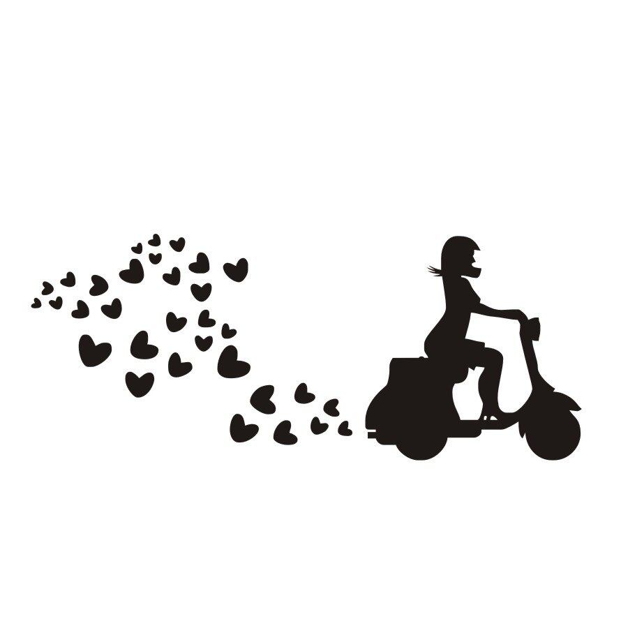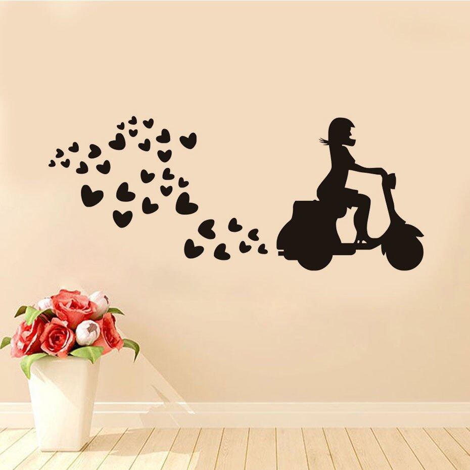 女性乗馬スクーターイジェクトハート型のパターン壁デカール用リビングルーム取り外し可能なビニールウォールステッカー漫画の壁アートインテリア