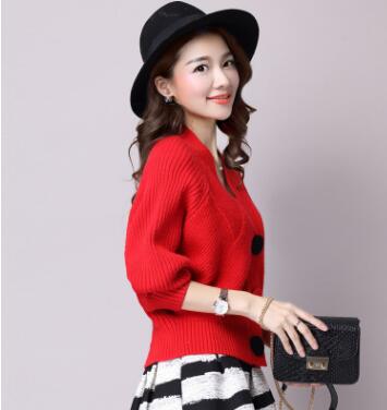 ソリッド V ネックボタンニットカーディガンショートジャケット女性生き抜く基本ファッションレディースセーター女性カーディガンコート赤、黒