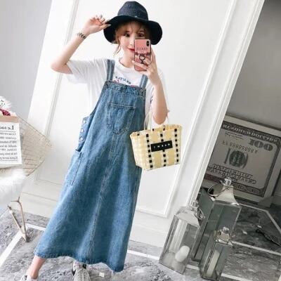 2018 ヴィンテージルーズデニムマキシドレス夏の女性のジーンズドレスプラスサイズロングサスペンダードレスロンパース女性 Vestidos 5XL