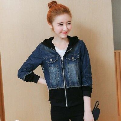 デニム基本コート爆撃機レディースジーンズのジャケットの女性ジッパー生き抜く付き Jaqueta Feminina ジーンズ女性生き抜く