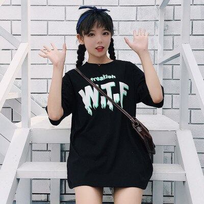 学生tシャツ半袖女性原宿tシャツmaglietteドナ面白い文字tシャツブラックホワイトカジュアルロングtシャツ