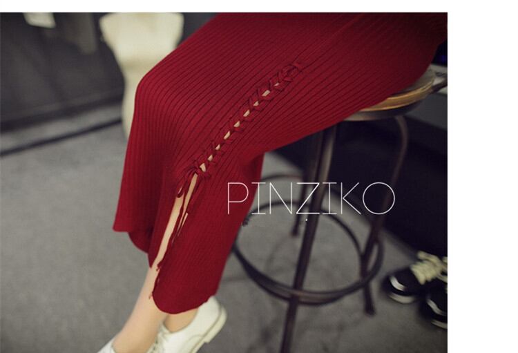 2018春秋サイアロンガスリム暖かいニットスカート女性レースアップ分割ペンシルスカート女性長い冬スカートカーキ