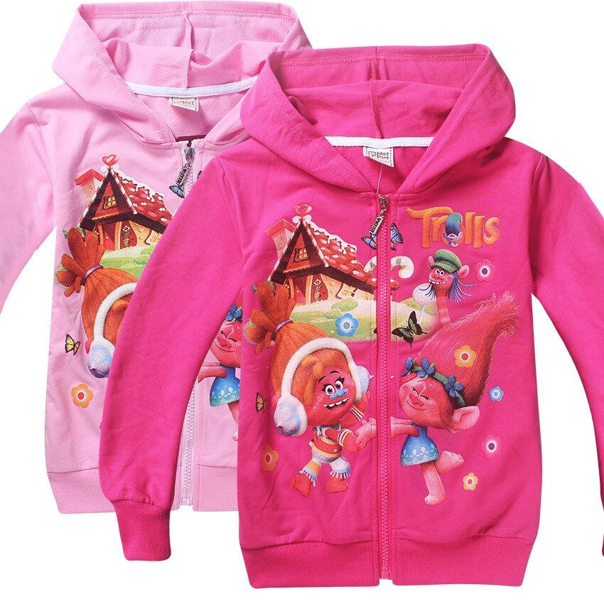 2017 trollsボビージッパートレーナー女の子ジャケットコート用女の子生き抜くフード付きスウェットシャツ子供服スポーツ衣装