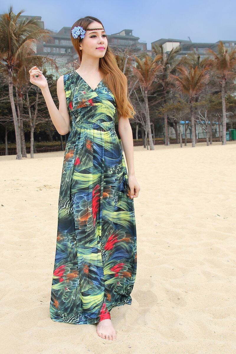 女性の夏のドレス2018新しいセクシーなボヘミアン自由奔放に生きるビーチドレスを印刷vネック着物パーティーマキシロングマキシドレスプラスサイズ4xl