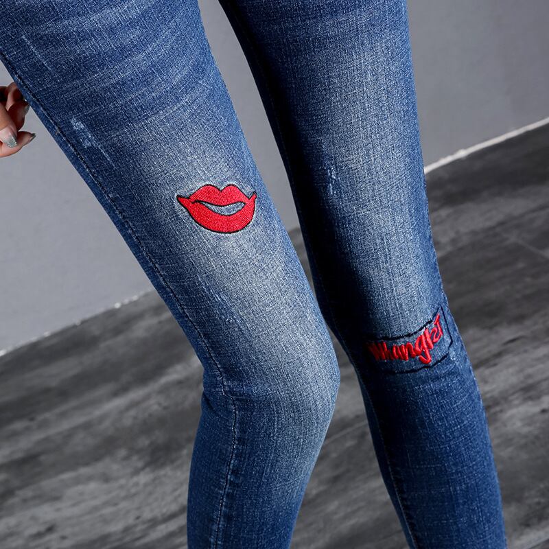 Nonis 新到着の女性の秋弾性ミッドウエスト全身スキニーペンシルジーンズ学生スリムフィット女の子甘いジーンズ