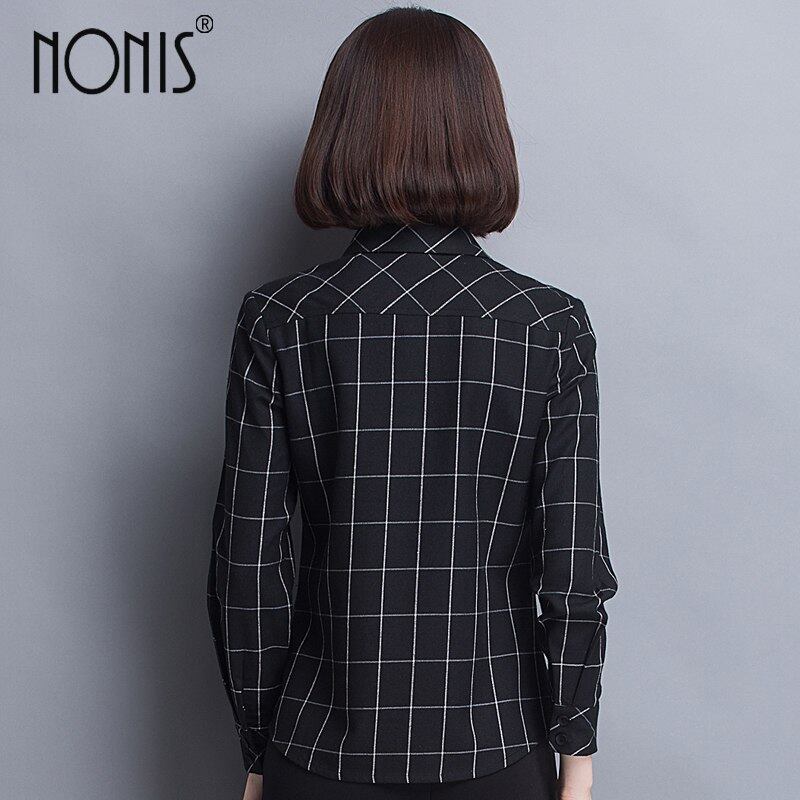Nonis綿格子縞のシャツ女性ブラウス長袖レディースオフィストップスシャツプラスサイズ衣類用女性blusas
