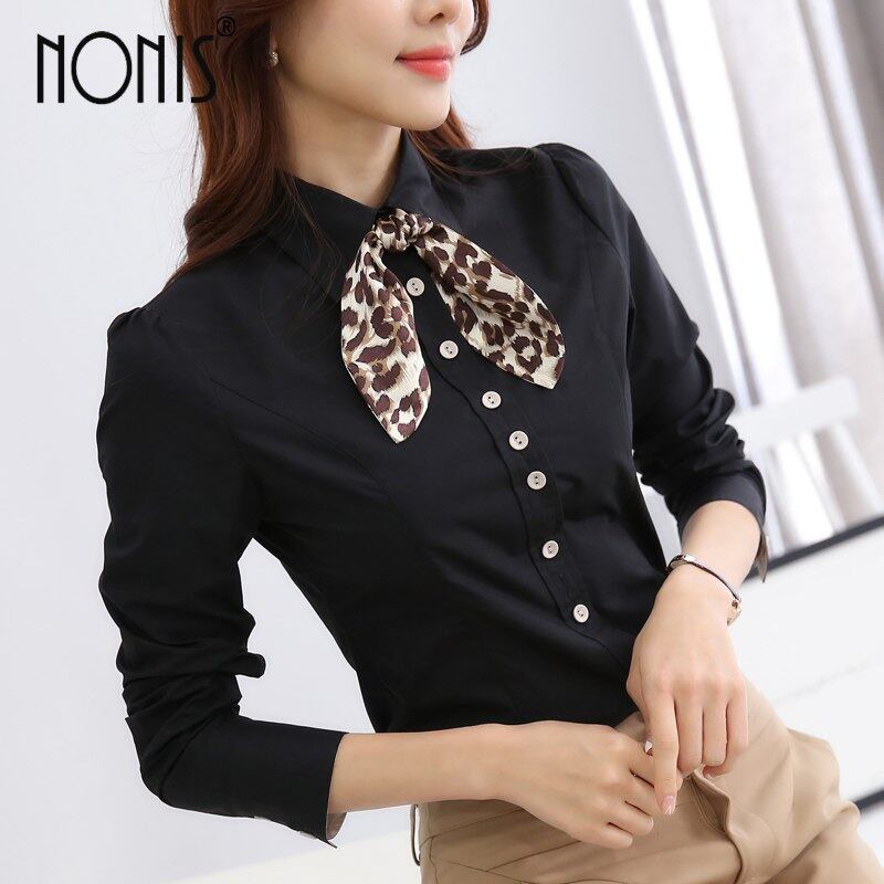 Nonis ol服女性長袖シャツ黒スリムコットンブラウスオフィスレディースプラスサイズs-4xlフォーマルトップスblusas feminino