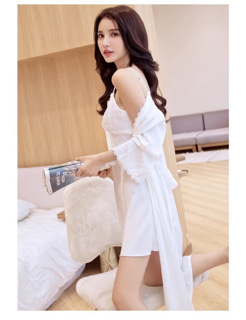 新しい到着夏の女性高アイスシルクローブとスカートセットレディプリンセスセクシーな花パジャマナイトガウンローブセット551