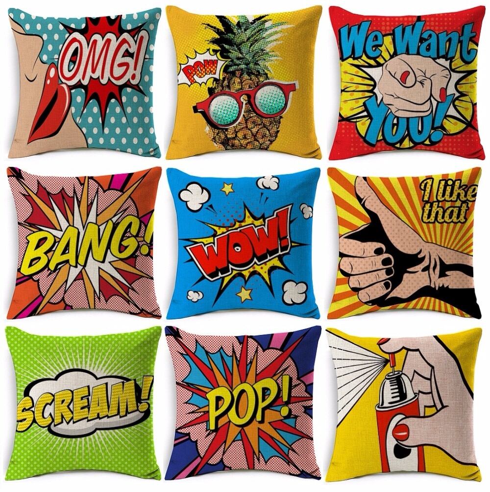 アメリカのポップアートクッションカバー捕虜強打wow愛パイナップル現代のクッションカバーベージュリネン枕ケース用ソファカウチシート