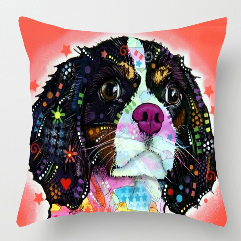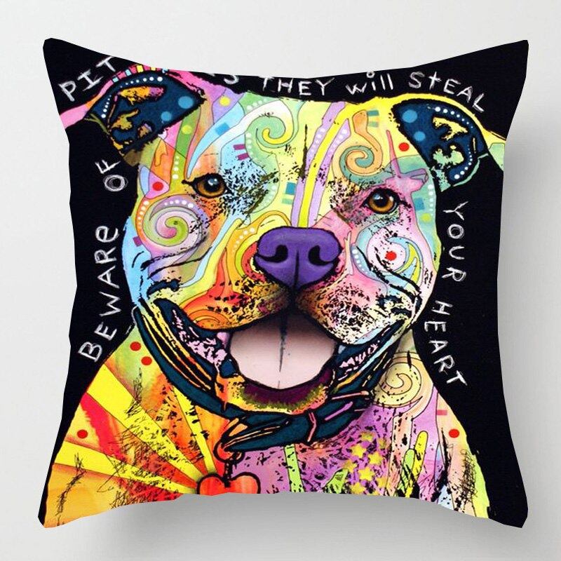 ピットブルshepチワワ犬クッションカバーファンタスティック色絵画ペット犬装飾クッションカバーベージュリネン枕ケース