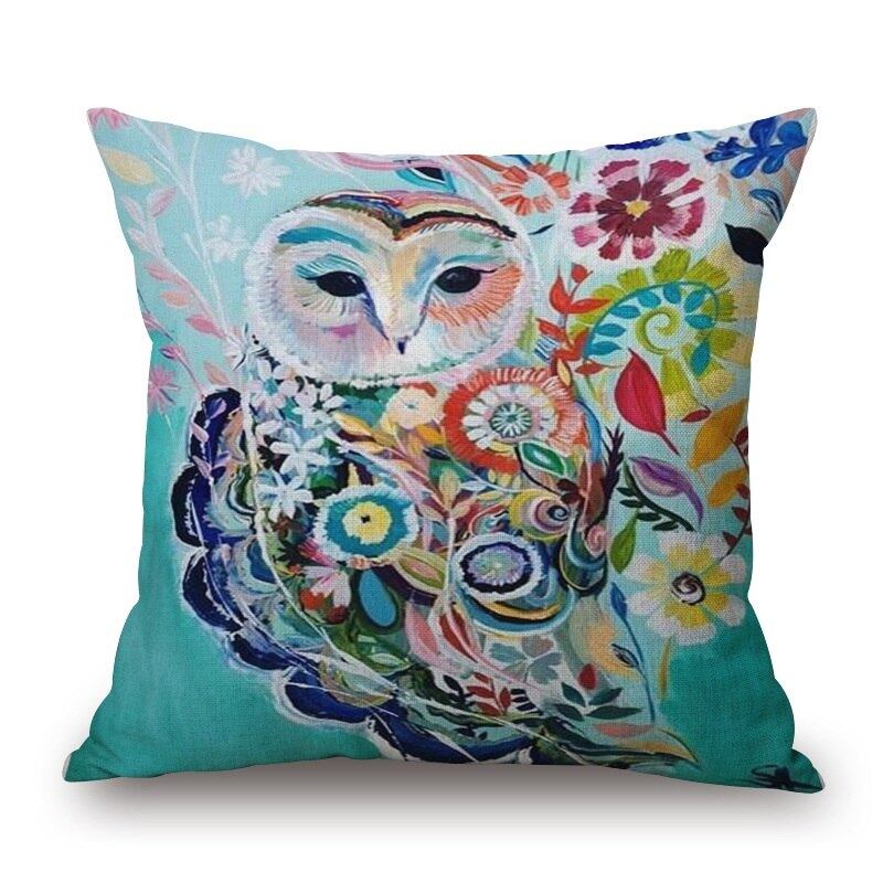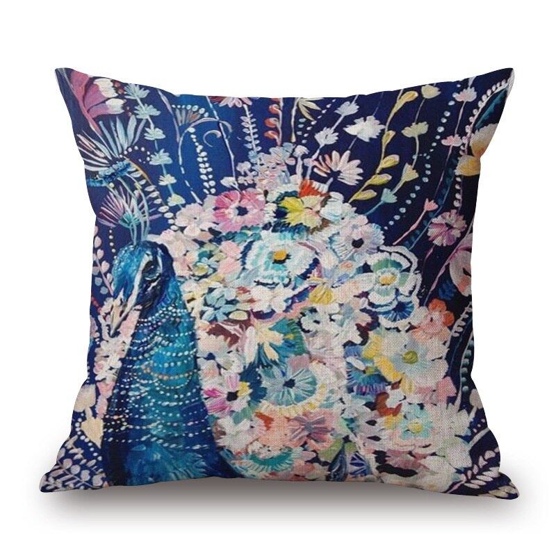 水彩絵画花鳥孔雀フクロウクッションカバー動物鹿ヘラジカクッションカバー装飾リネン枕ケース