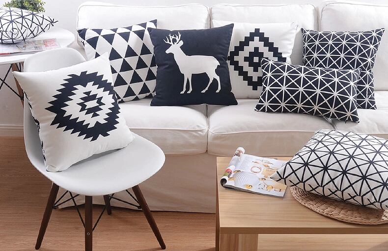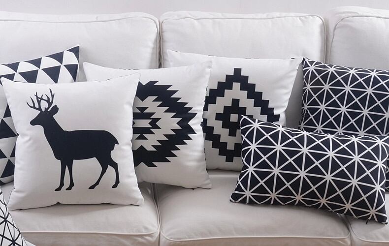 現代の最小限の黒と白のクッションカバー幾何ストライプ三角形格子縞鹿ヘラジカ枕カバーベルベット枕ケース