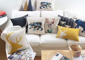 北欧幾何三角形鹿ヘラジカ象クマクッションカバー動物スケッチ山クッションカバーリネンコットン枕ケース
