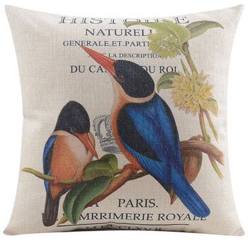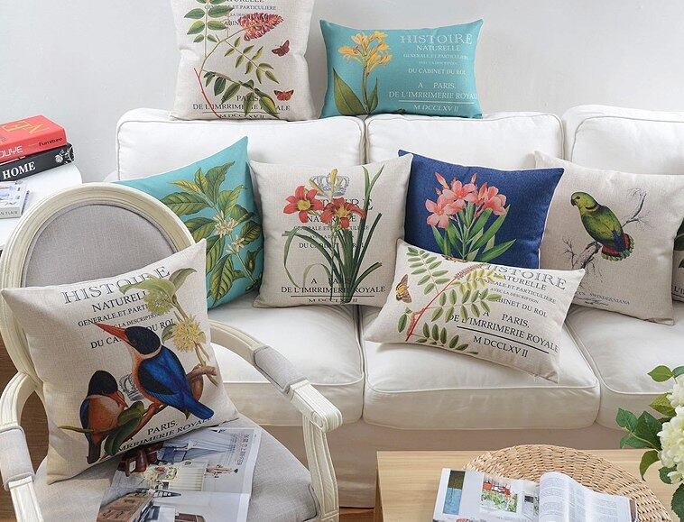 パリhistoire naturelle植物クッションカバー北欧ヴィンテージ緑の葉花鳥クッションカバーリネンコットン枕ケース
