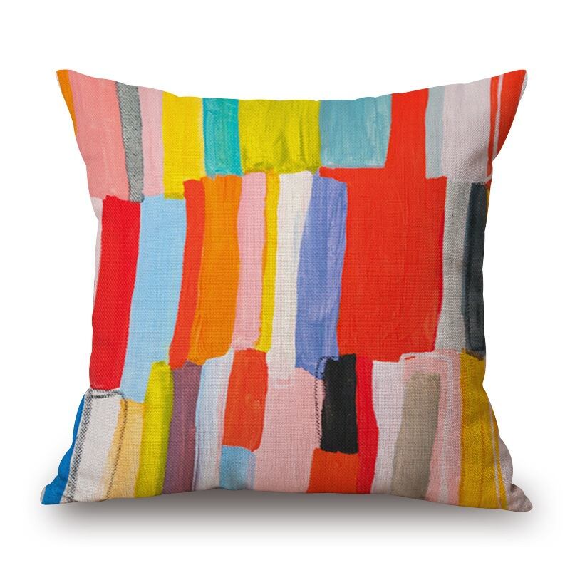 水彩絵画アートクッションカバーカラフルなストライプ枕ケースソファチェア装飾リネンコットンクッションカバー