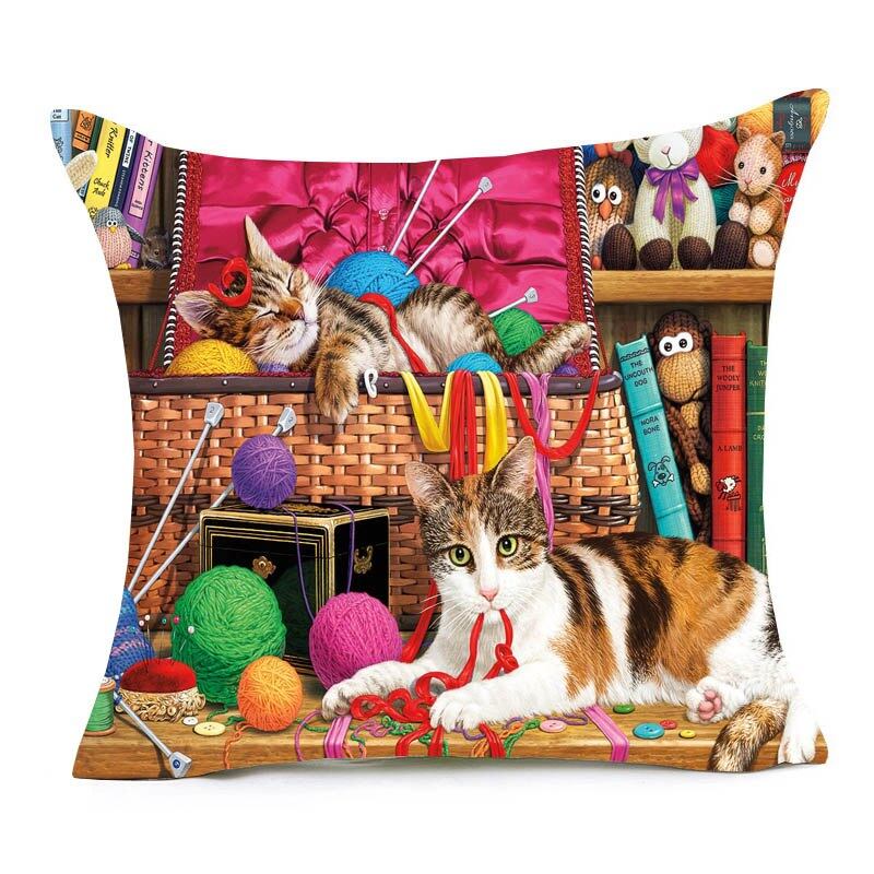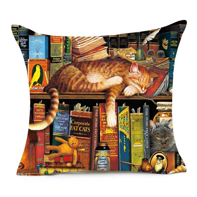 アメリカ猫アートクッションカバーヴィンテージレトロ猫洋書クッションカバー装飾リネン枕ケース用ソファカウチ
