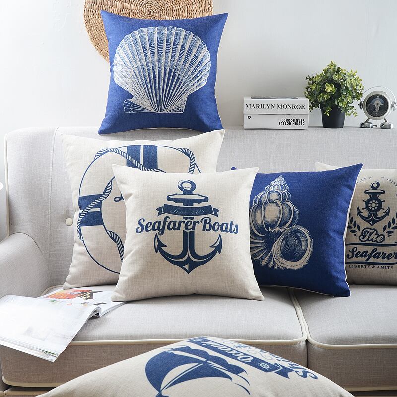 地中海船員ボート海ボイジャー海洋アンカークッションカバー巻き貝シェル枕カバーソファリネンコットン枕ケース