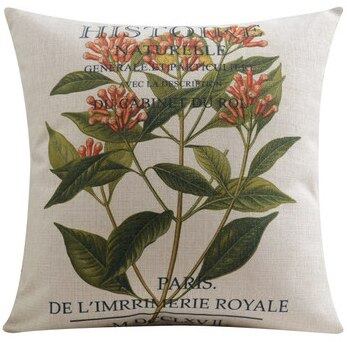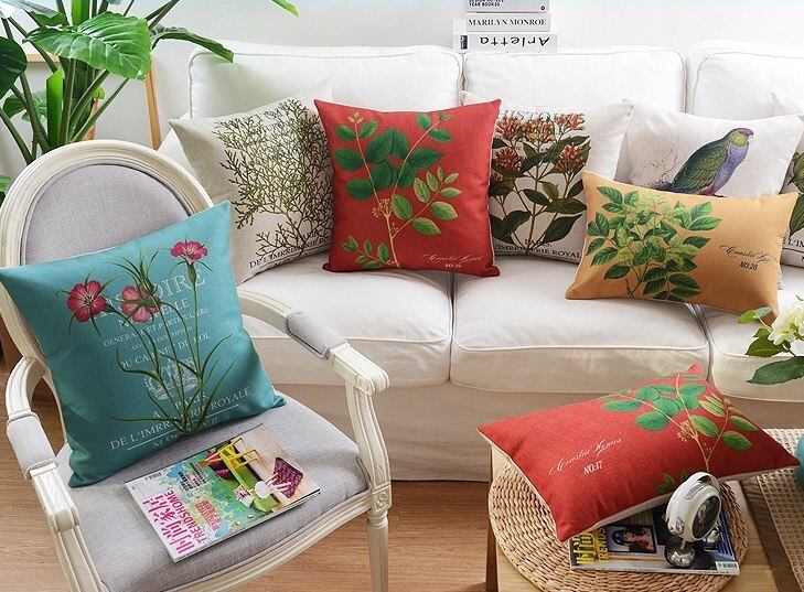 鳥と花植物クッションカバーアメリカン素朴なヴィンテージスタイルフローラルグリーン葉クッションカバーリネンコットン枕ケース