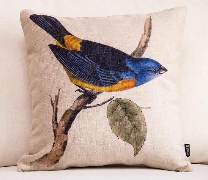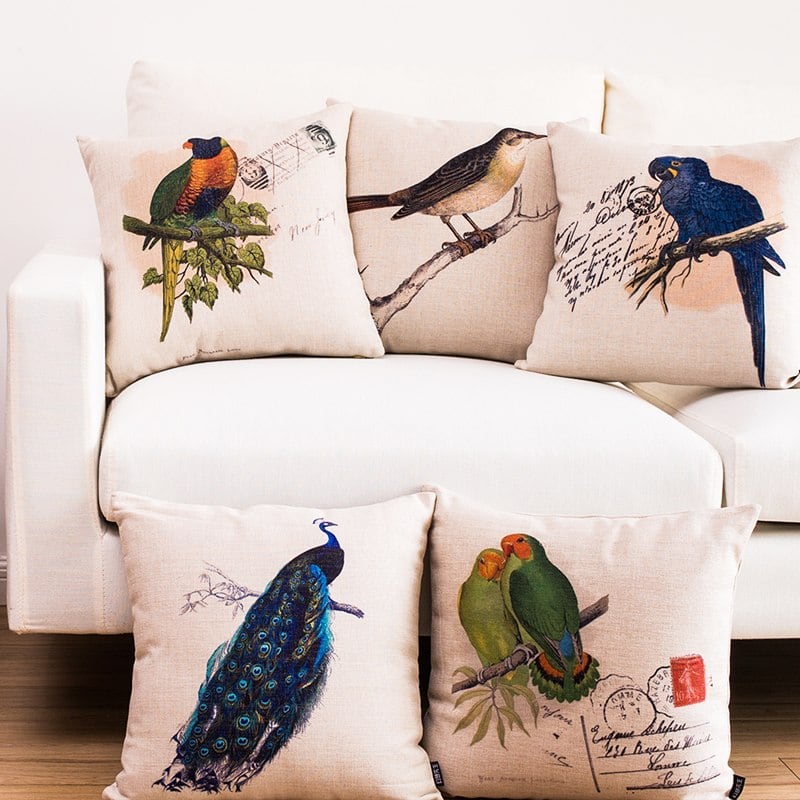 アメリカンレトロビンテージ牧歌花鳥孔雀オウム絵画クッションはリネンコットンクッションカバー枕ケース