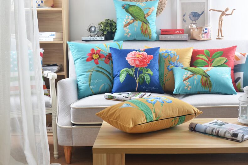 鳥と花クッションカバーハイビスカスの花の鳥オウム枕カバーカラーストライプフラグの米国英国印刷ベルベット枕ケース