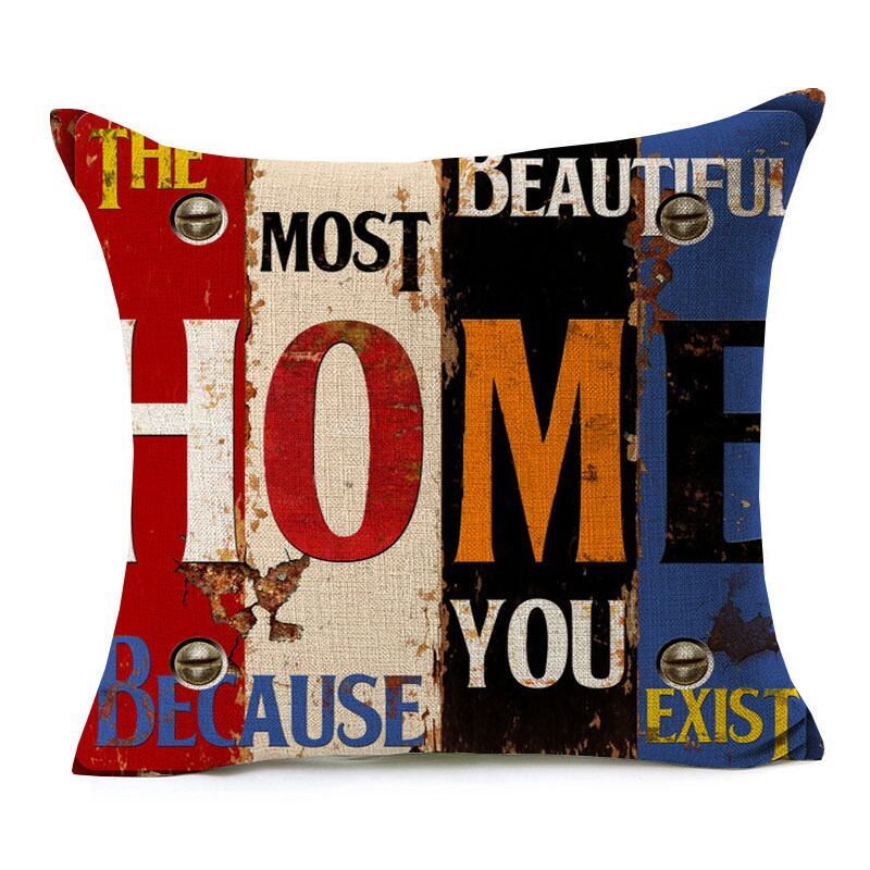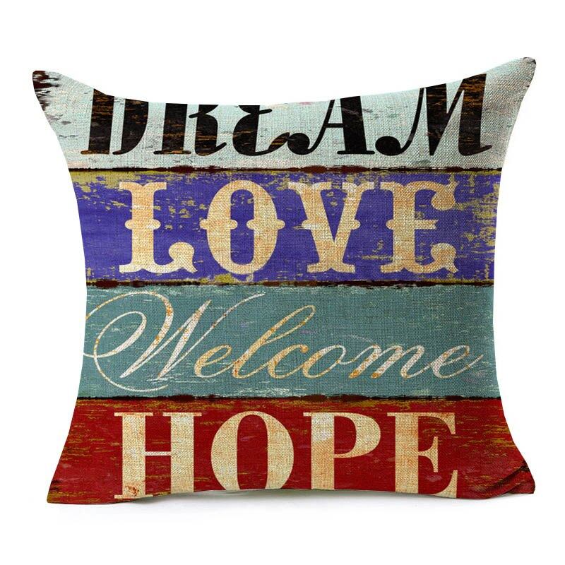 アメリカのヴィンテージレトロなアートクッションカバー愛ホームファミリー夢ホープ手紙クッションカバーソファソファーリネン枕ケース