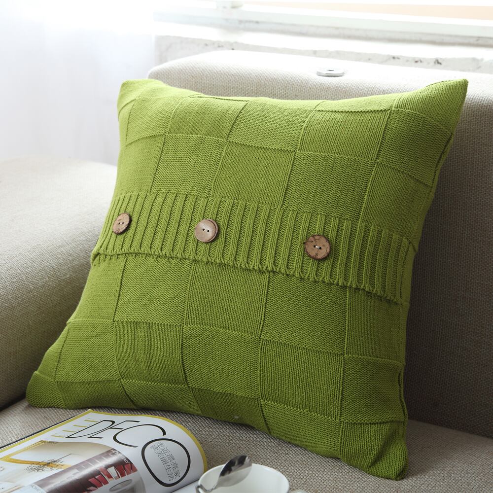 編みウールクッションカバー現代最小限のジオメトリチェック模様アートウール無地枕カバー両面ボタンバックル枕ケース