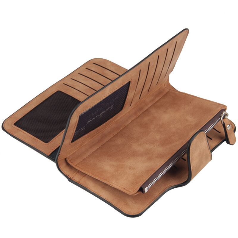 Baellerry革女性財布高品質デザイン掛け金無地カード袋長い女性財布6色レディースクラッチ財布