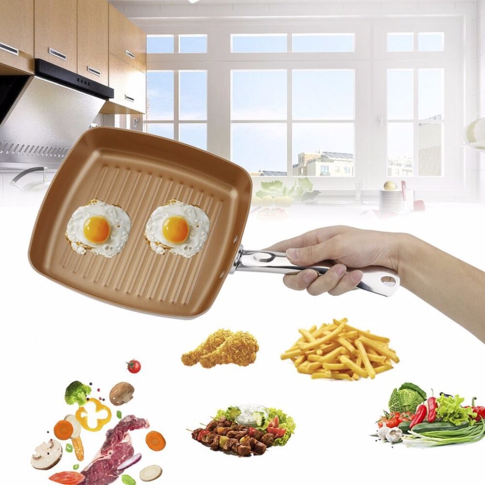 銅底コーティングノンスティック表面10.5 "スクエアグリルパンti-ceramaセーフオーブン調理器具キッチンツール用ベーキングバーベキュー