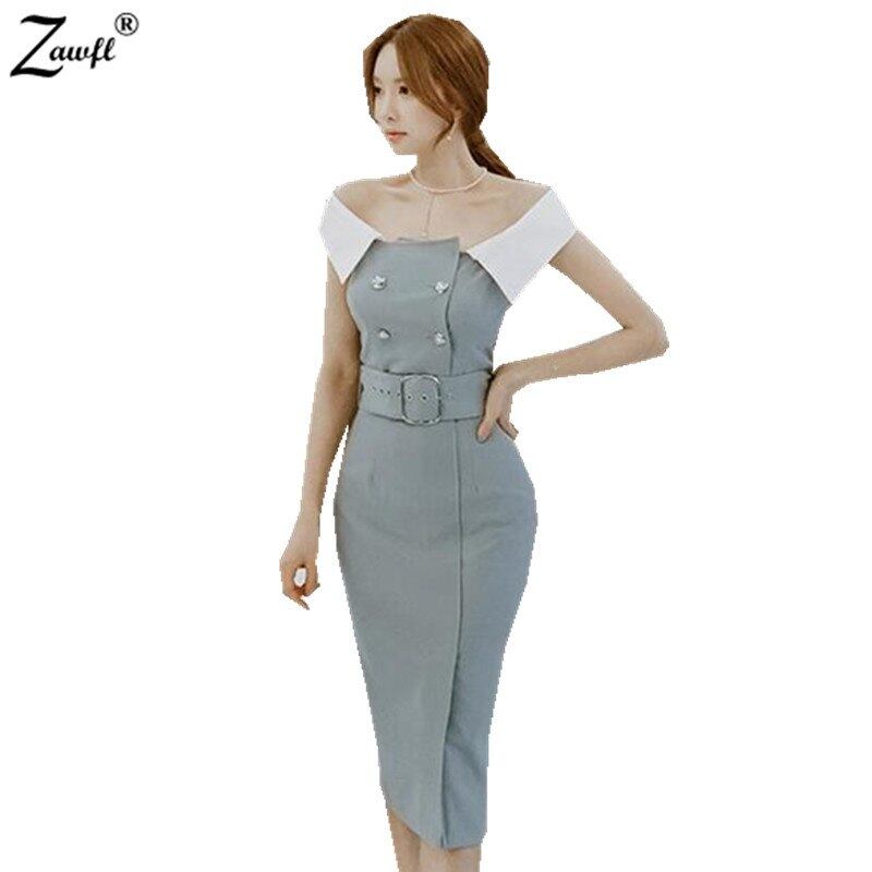 Zawfl夏オフィス包帯ドレス女性2018半袖スラッシュネックヴィンテージボディコン鉛筆ドレス女性vestidosフェスタ