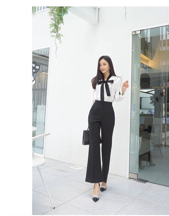 Zawfl女性甘い弓ネクタイネックフリルシフォンシャツプリーツ真珠ロングスリーブ緩いブラウスレディースカジュアルトップスblusas