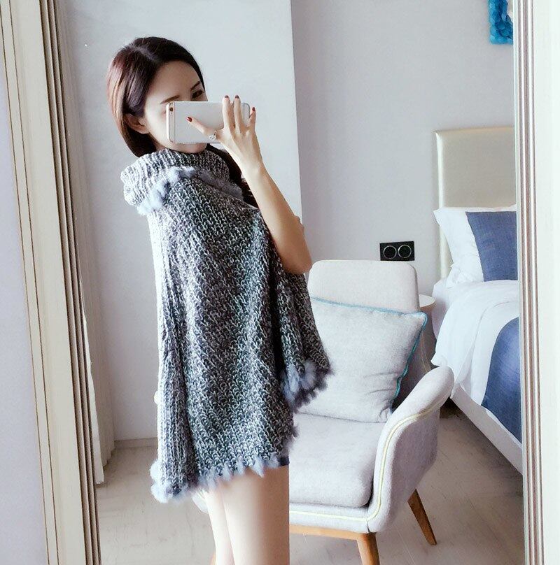 Zawfl 2017新しい高品質滑走路の女性のセクシーなオフショルダーポンチョ緩いニットウサギの毛皮のセーター