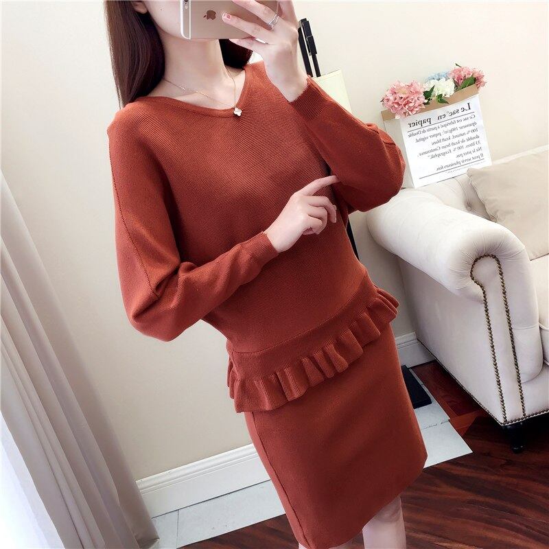 高品質 2018 春の新女性のニットスーツドレスの女性のファッションセーターパッケージヒップスカートツーピースの女性
