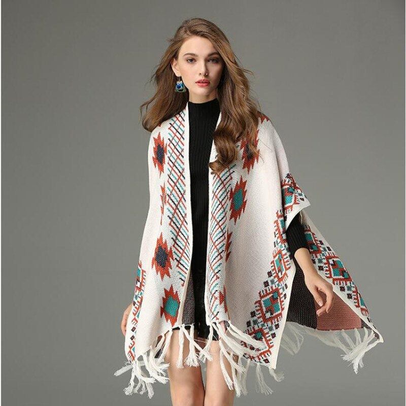 Zawfl民俗スタイルマントポンチョ編みセーターコートセーターmujer invierno 2017ジャカード縁取られたショールポンチョfeminino