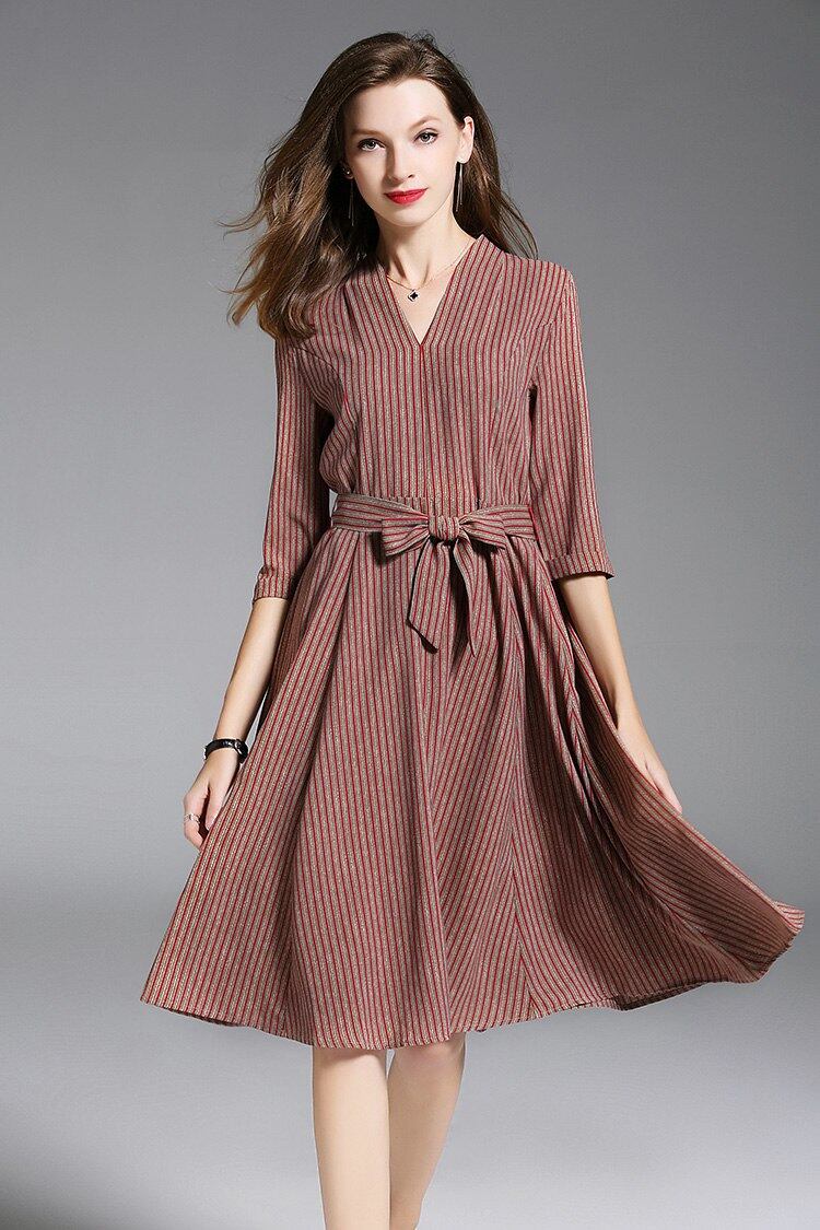 2018甘い縞模様夏ちょう結び膝丈ドレスカジュアルデザインプリンセスドレスセクシーなスリムフリル女性人魚vestido