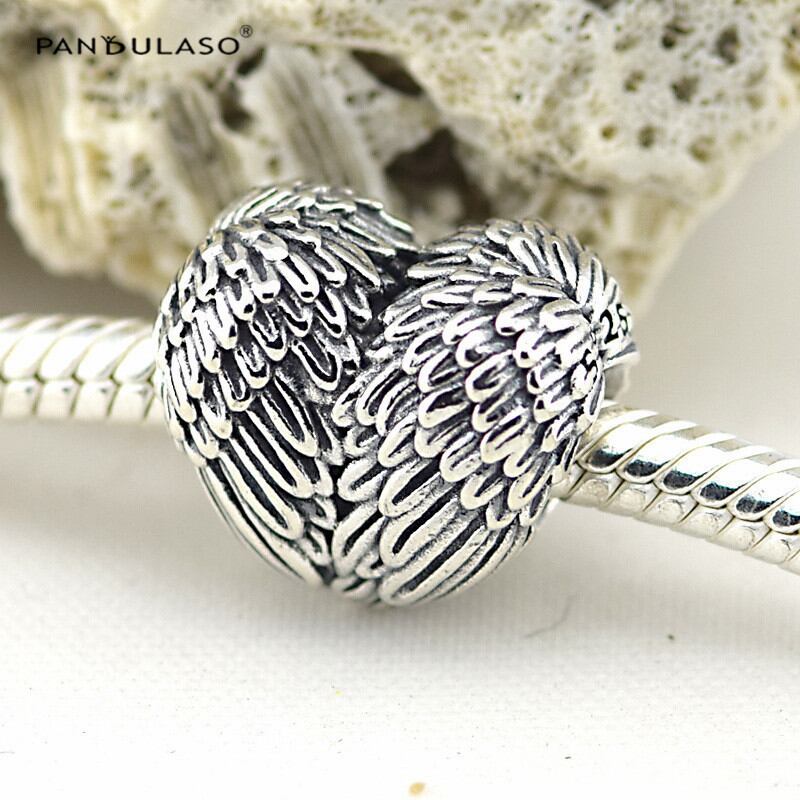 Pandulaso天使の羽の羽ハートビーズジュエリーメイキングのためにフィットオリジナルチャームブレスレット&腕輪シルバーチャームdiyのジュエリー
