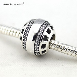Pandulaso 署名ロゴクリスタルビーズジュエリーメイキングのためにフィットオリジナルチャームブレスレット & バングルシルバーチャーム Diy のジュエリー