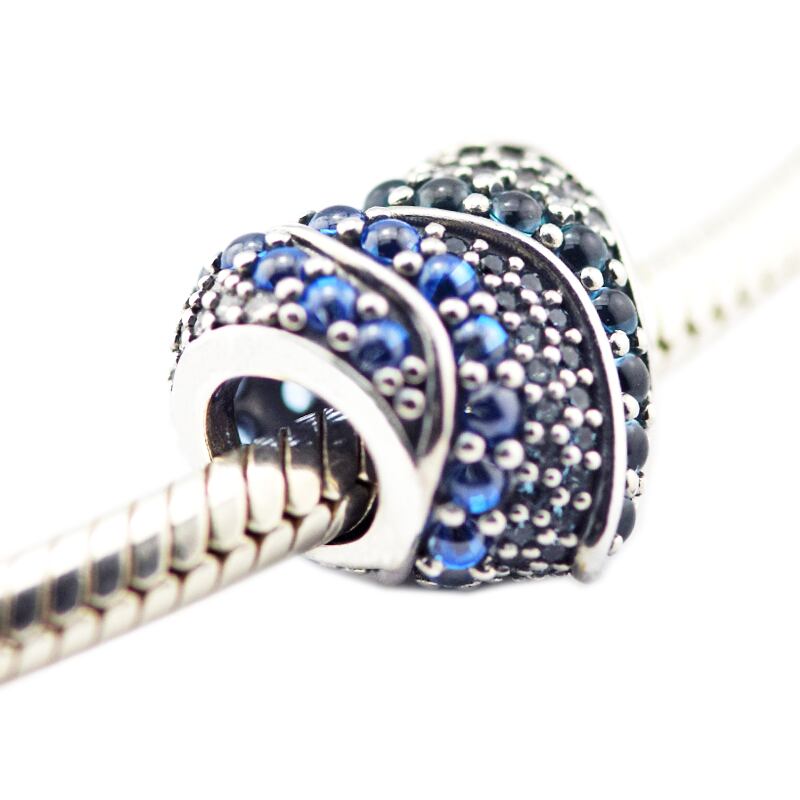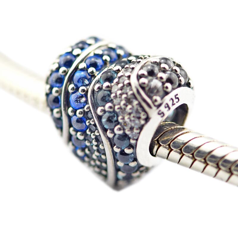 Pandulaso混合ブルー&クリアクリスタルハートビーズジュエリーメイキングのために女性のファッション春diyのジュエリーフィットシルバー925ブレスレット