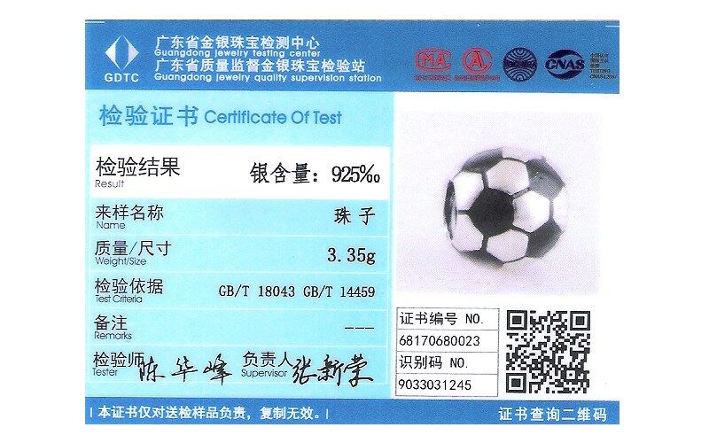 Pandulaso黒エナメルサッカースポーツシルバービーズジュエリーメイキングのためにフィットオリジナルチャームブレスレット&バングルチャームdiyジュエリー