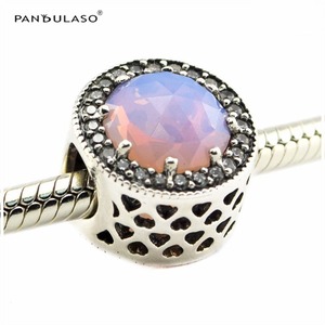 Pandulaso乳白色ピンククリスタルビーズdiyのジュエリーフィットチャームオリジナルブレスレット晴れやか心シルバービーズジュエリーメイキングのために