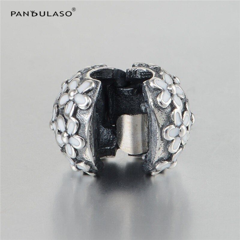 Pandulasoホワイトデイジークリップ花チャームビーズジュエリーメイキングのためにフィットオリジナルチャームブレスレット&バングルラウンドビーズdiyジュエリー