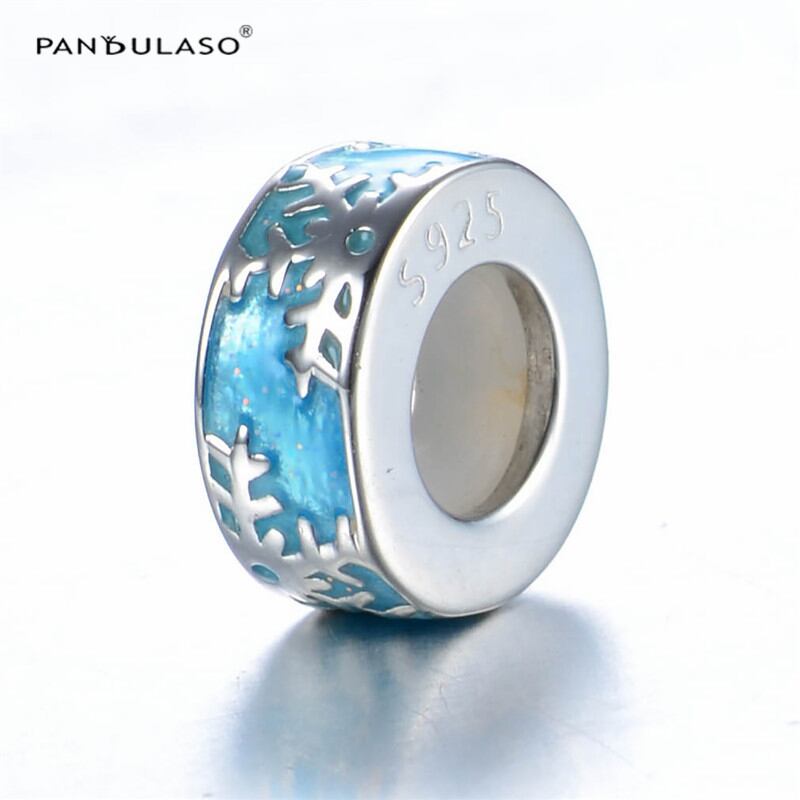 Pandulaso冬diyジュエリーアクセサリースノーフレークブルージュエリーメイキングのためにルーススペーサービーズフィットオリジナルシルバーチャームブレスレット
