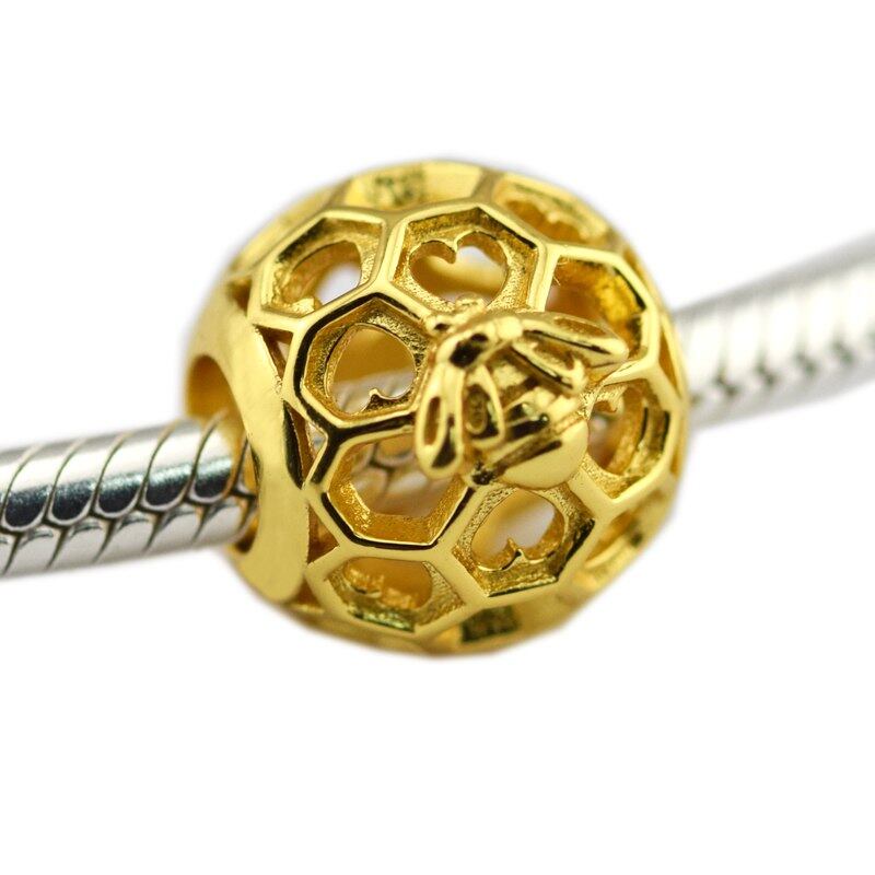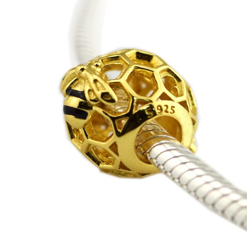 Pandulasoミツバチ黄金メッキ磨きビーズジュエリーメイキングのために女性のファッション春diyのジュエリーフィットチャームシルバー925ブレスレット