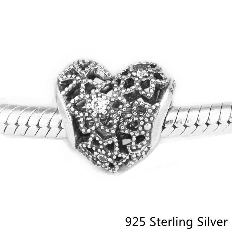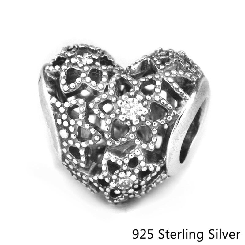 925スターリングシルバー咲くハートチャームフィット女性diyチャームオリジナルブレスレットビーズ用ジュエリー