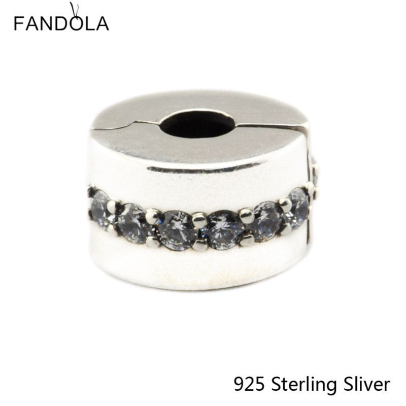 925スターリングシルバー輝くパス、クリアczクリップチャームヨーロッパビーズフィットチャームブレスレット用女性