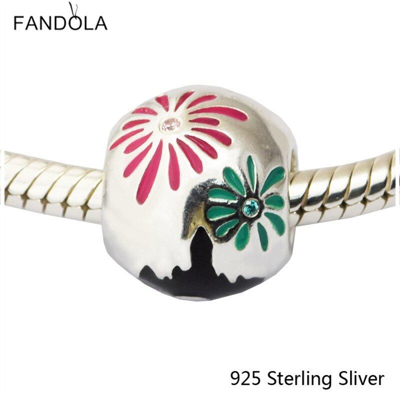 100%リアルs925スターリングシルバーfantasyland花火チャームビーズクリエイティブペンダント本物のジュエリーギフト
