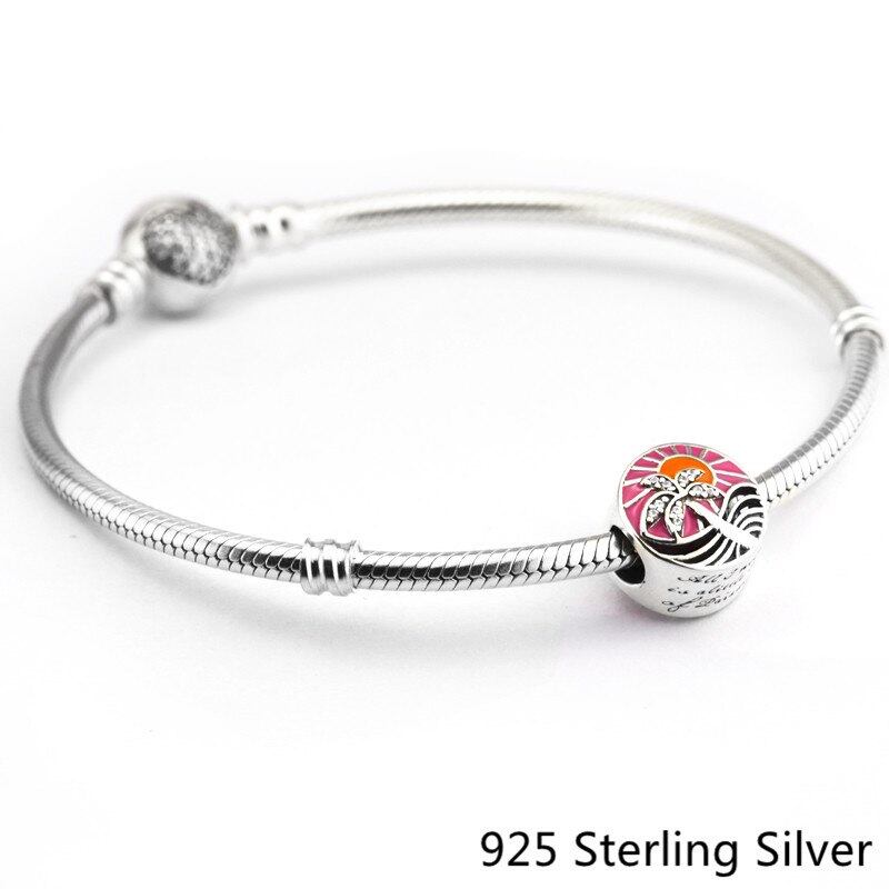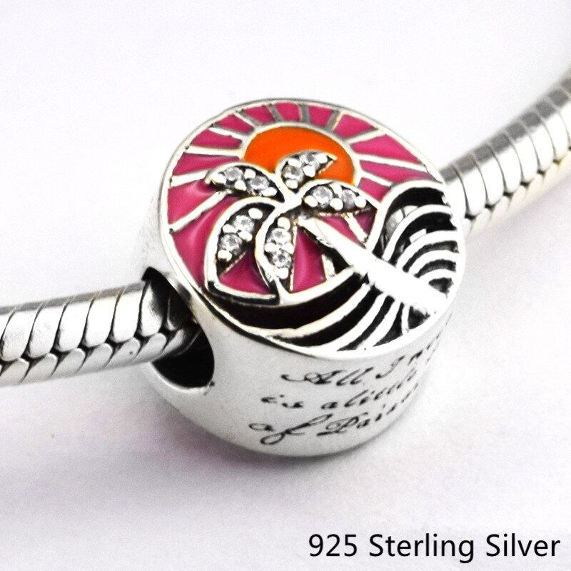 925スターリングシルバートロピカルサンセット混合エナメル&クリアczチャームスタイルとより適切なため個のジュエリーペンダント